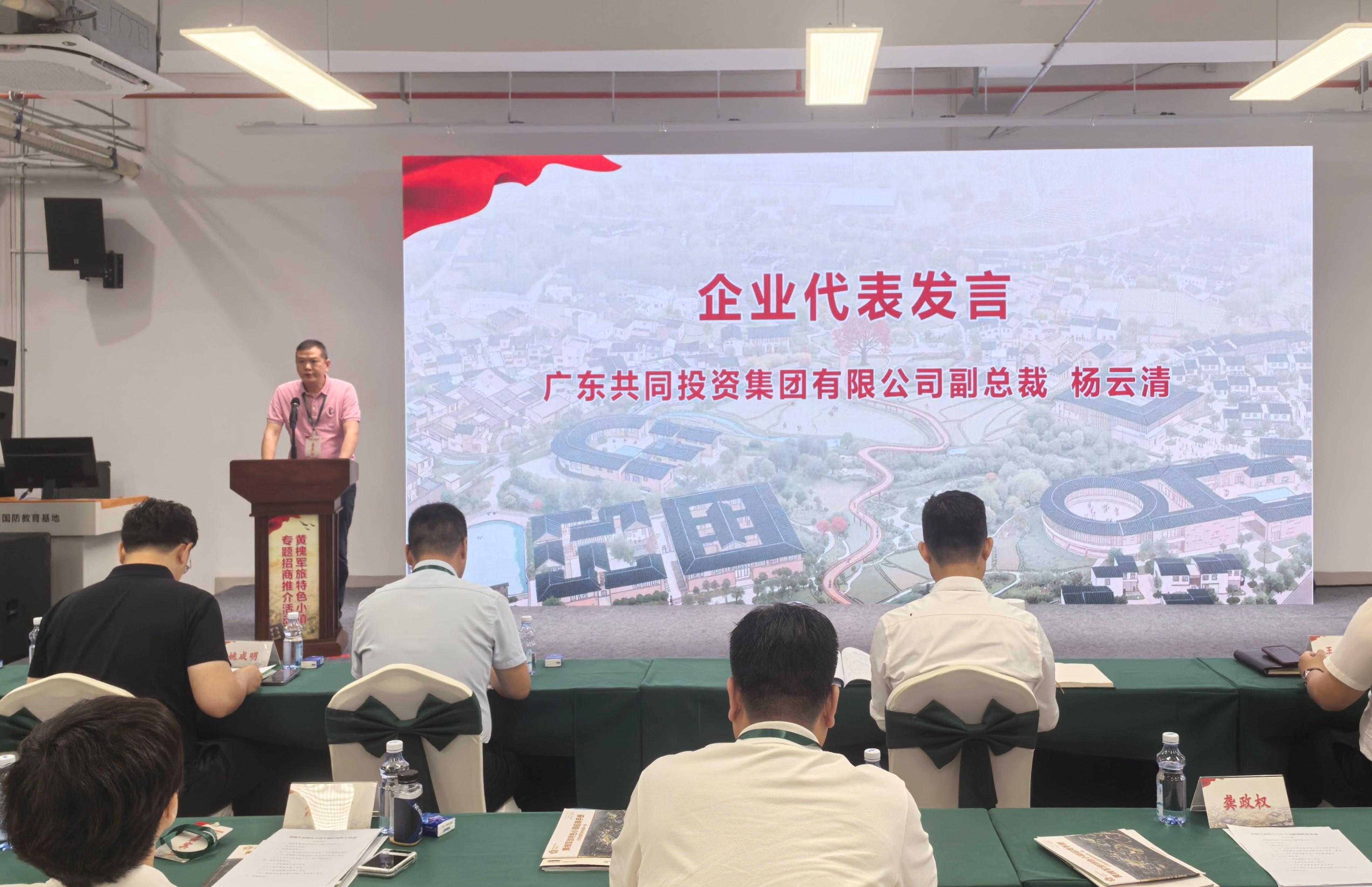 4月9日上午,广东共同投资集团副总裁杨云清、运营中心负责人杨群代表集团应邀出席由兴宁市人民政府、梅州市商务局联合主办的“投资广东·梅商荟”——黄槐军旅特色镇专题招商推介活动。活动在兴宁市黄槐镇岭南国防教育基地综合楼隆重举行。
